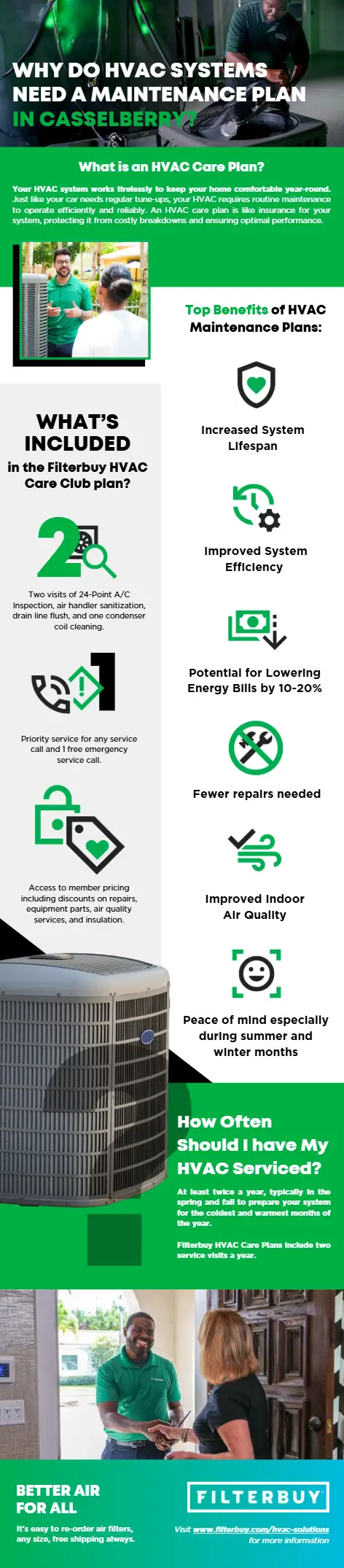 - Twice-yearly tune-ups work best in Casselberry’s long cooling season and high humidity.